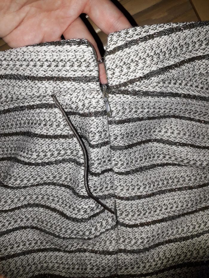short blanc et kaki brillant etam taille 44, les rayures kaki ont du fil doré brillant dedans, fermeture éclair sur le coté avec petit crochet en haut #44petitefee3