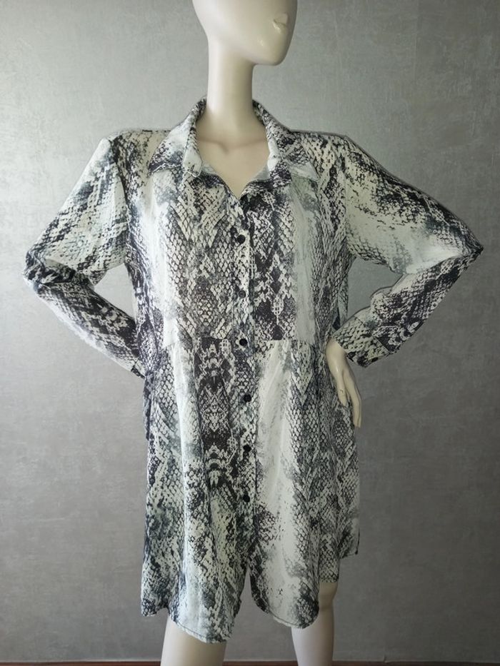 robe motif python grise et blanche made in italy taille 44, matière 100 % polyester, largeur aisselle à aisselle 56 cm, longueur du dessous de bras à en bas 64 cm #44petitefee3