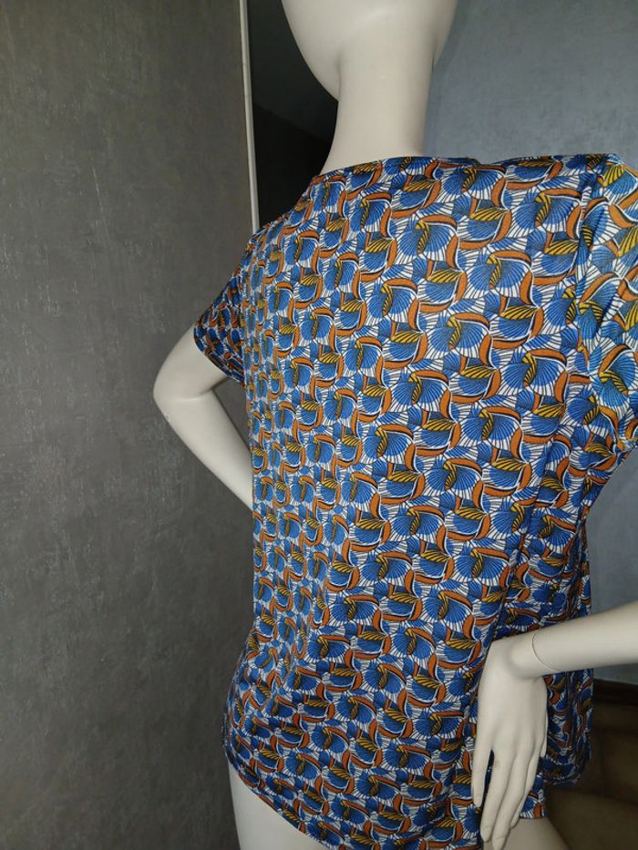 tee shirt bleu et coloré cache cache taille 42, étiquette composition coupée mais matière élasthane, largeur aisselle à aisselle 52 cm , longueur du dessous de bras à en bas 42 cm #42petitefee3