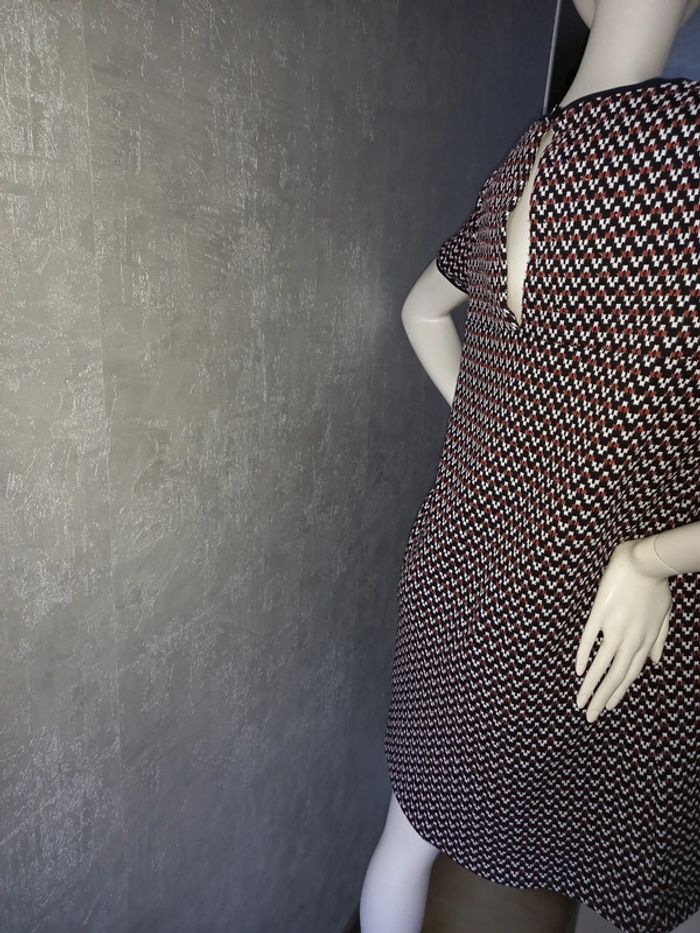 robe promod marron blanche et noire taille 40, étiquette de composition coupée mais matière élasthane, largeur aisselle à aisselle 49 cm , longueur du dessous de bras à en bas 68 cm #40petitefee3