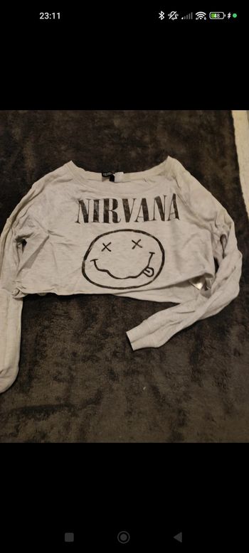 tee shirt en voile court evalinka, marqué taille 3 mais taille 40, étiquette de composition coupée mais matière élasthane, matière voile transparent sur les bras, doublé pour le reste, largeur aisselle à aisselle 42 cm, longueur du dessous de bras à en bas 31 cm #40petitefee3