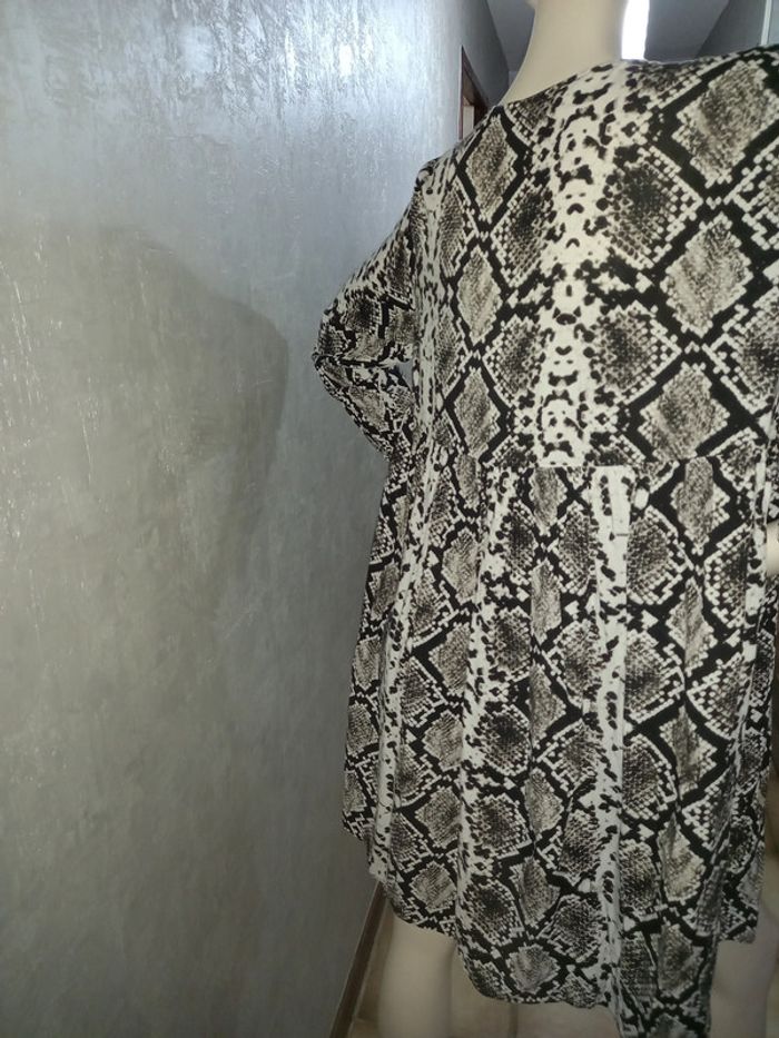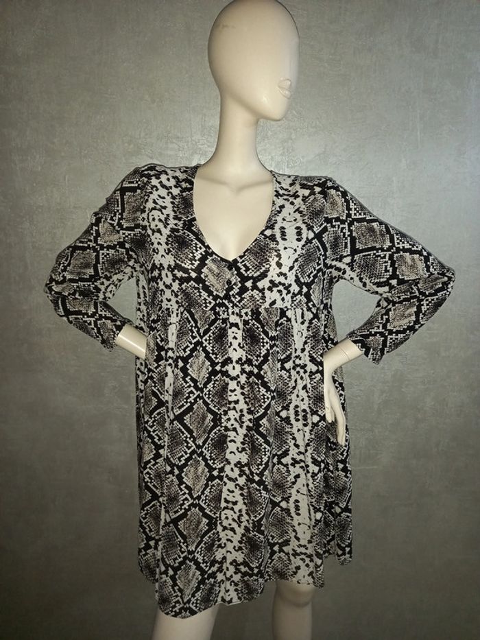 robe motifs python zara, marqué taille M mais taille 42, plus longue derrière que devant, largeur aisselle à aisselle 53 cm, longueur du dessous de bras à en bas 61 cm, matière 100 % viscose #42petitefee3