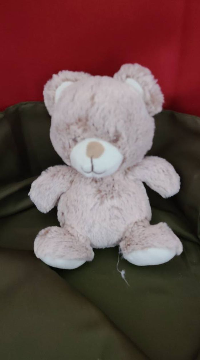 Peluche doudou ours blanc marron chine TEX Baby Carrefour 84