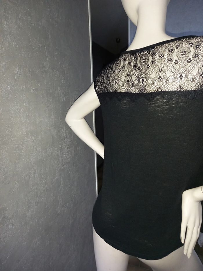 tee shirt noir et dentelle monoprix taille 40 - photo numéro 2