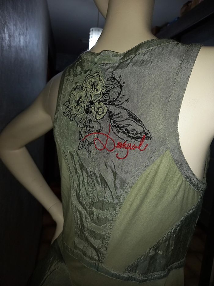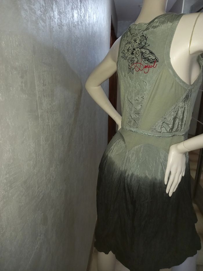 robe grise et noire desigual taille 40, largeur aisselle à aisselle 45 cm, longueur du dessous de bras à en bas 78 cm, lien que l'on peut serrer à la taille, étiquette composition coupée, matière non élasthane #40petitefee3