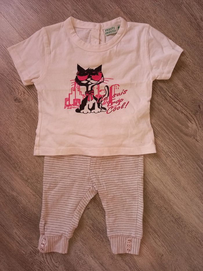 legging pailleté tape à l'oeil et tee shirt chat taille 6/9 mois