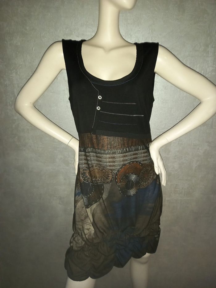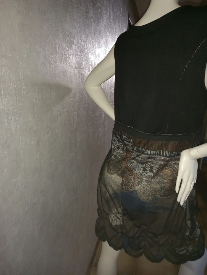 robe noire et voile en bas taille 42, largeur aisselle à aisselle 49 cm, longueur du dessous de bras à en bas 71 cm, matière 90 % polyester et 10 % laine #42petitefee3