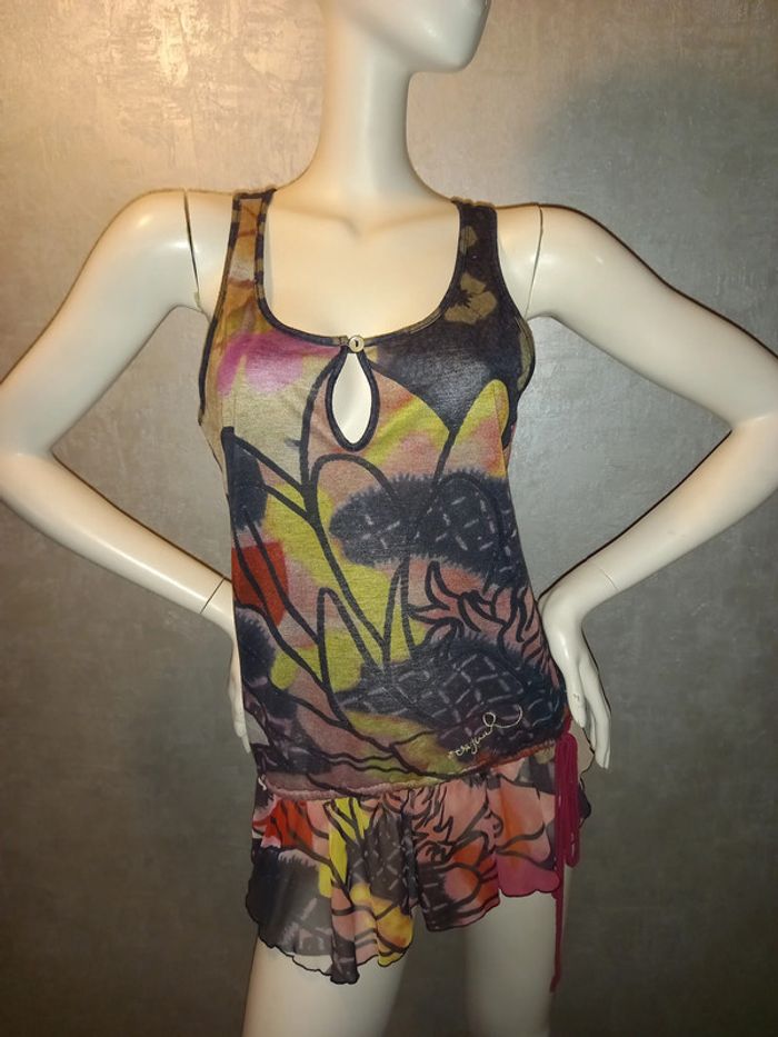 débardeur desigual, marqué taille L mais taille 38/40, voile transparent en bas du débardeur, matière élasthane #38petitefee3