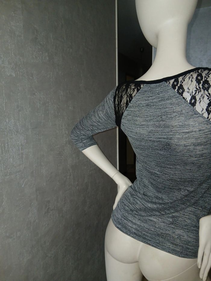 tee shirt gris et dentelle noire cache cache taille 36 - photo numéro 2