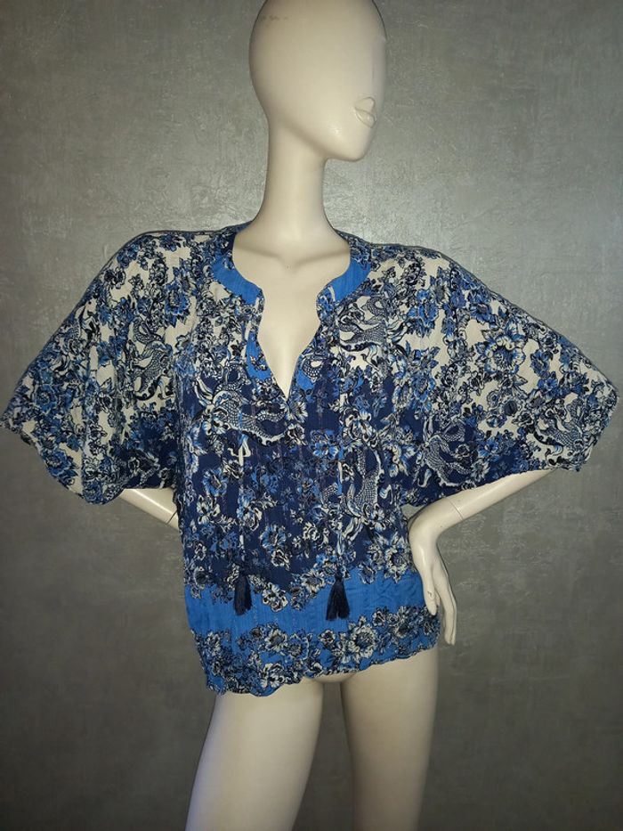 blouse manche mi longue bleu à rayure argenté desigual taille 40/42 - photo numéro 3