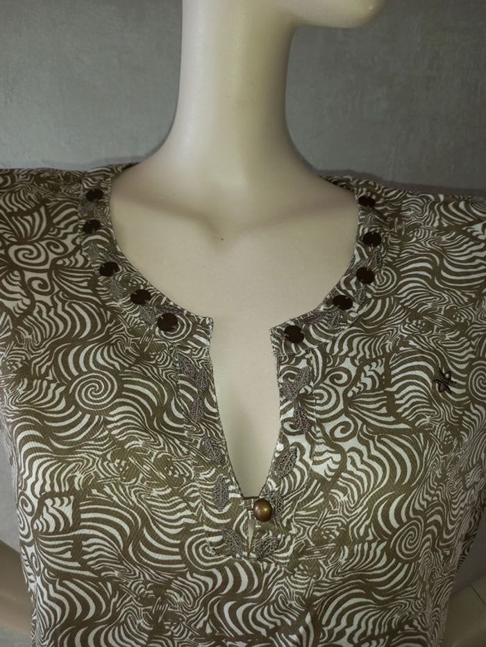 robe marron et blanche oxbow, marqué taille 2 et taille 40/42, matière 100 % coton, largeur aisselle à aisselle 50 cm, longueur du dessous de bras à en bas 68 cm #40petitefee3