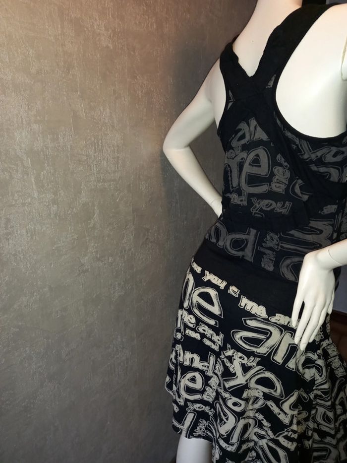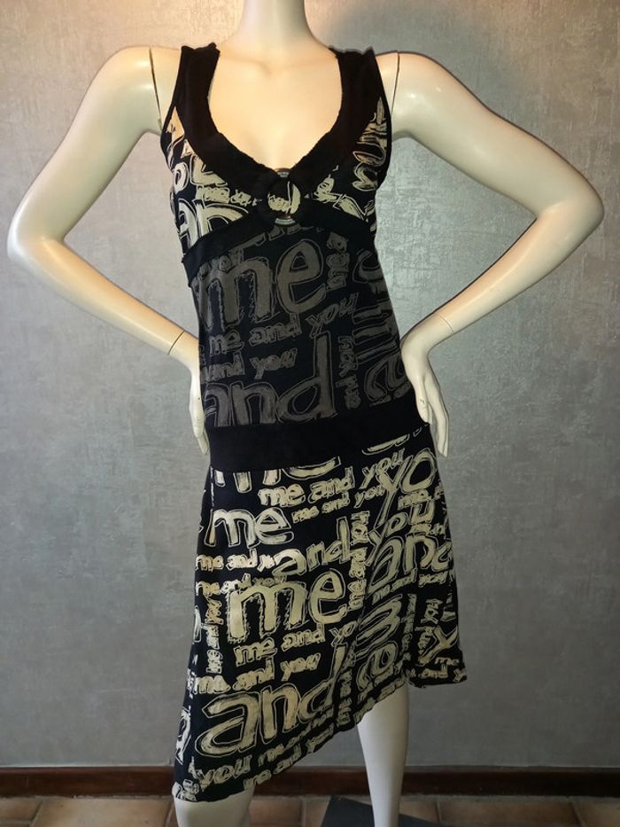robe noire et blanche desigual, marqué taille XL mais taille 40, largeur aisselle à aisselle 45 cm, longueur du dessous de bras à en bas 86 cm, étiquette composition coupée mais matière élasthane #40petitefee3