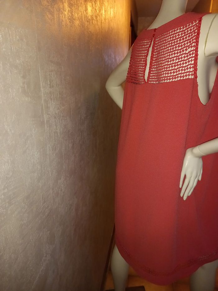 robe rose et broderie grain de malice taille 44, matière robe 97 % polyester et 3 % élasthane, matière broderie 100 % coton, largeur aisselle à aisselle 55 cm, longueur du dessous de bras à en bas 72 cm #44petitefee3