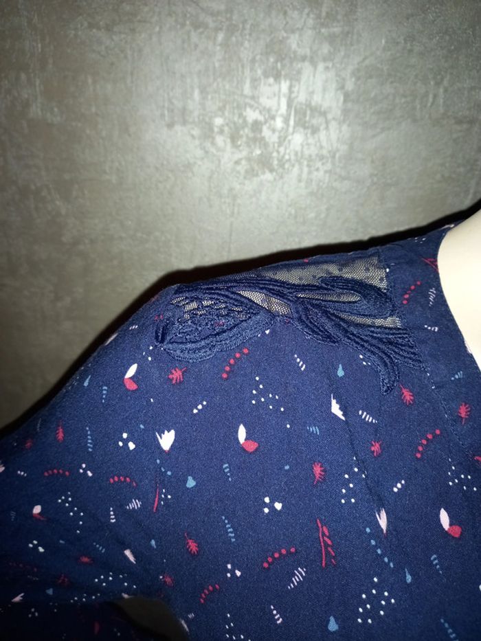 robe bleu marine à motifs avec dentelle épaule gémo taille 42 - photo numéro 3