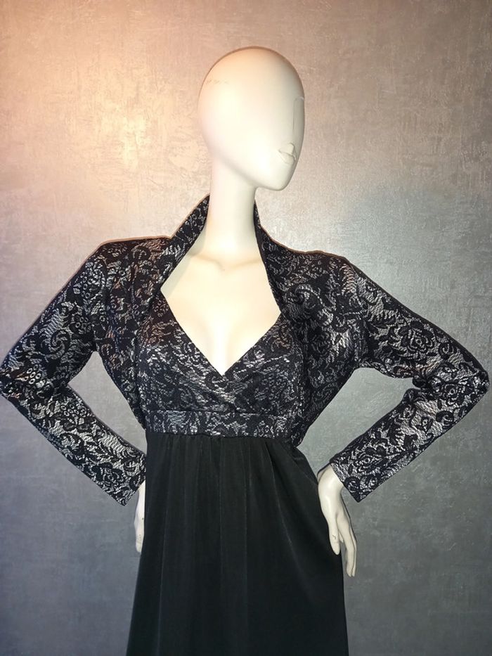 robe argenté et noire dentelle avec boléro assorti taille 42 - photo numéro 1