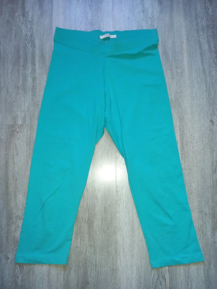 legging turquoise court mi mollet camaïeu, marqué taille 1 et taille 36/38, taille élastique ( largeur minimum 34 cm), longueur totale 70 cm, matière 95 % coton et 5 % élasthane #36petitefee3