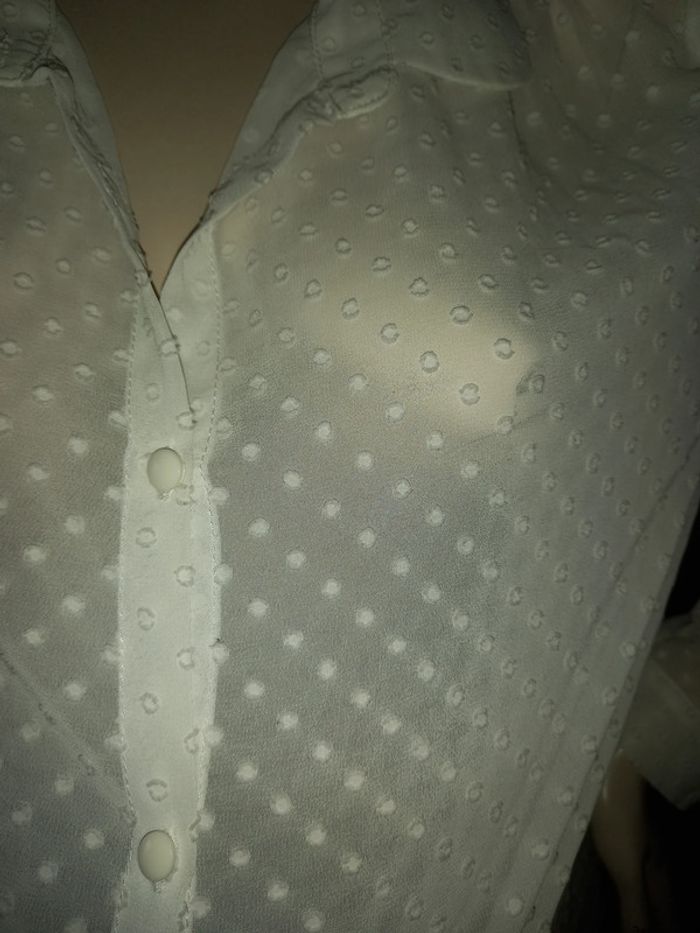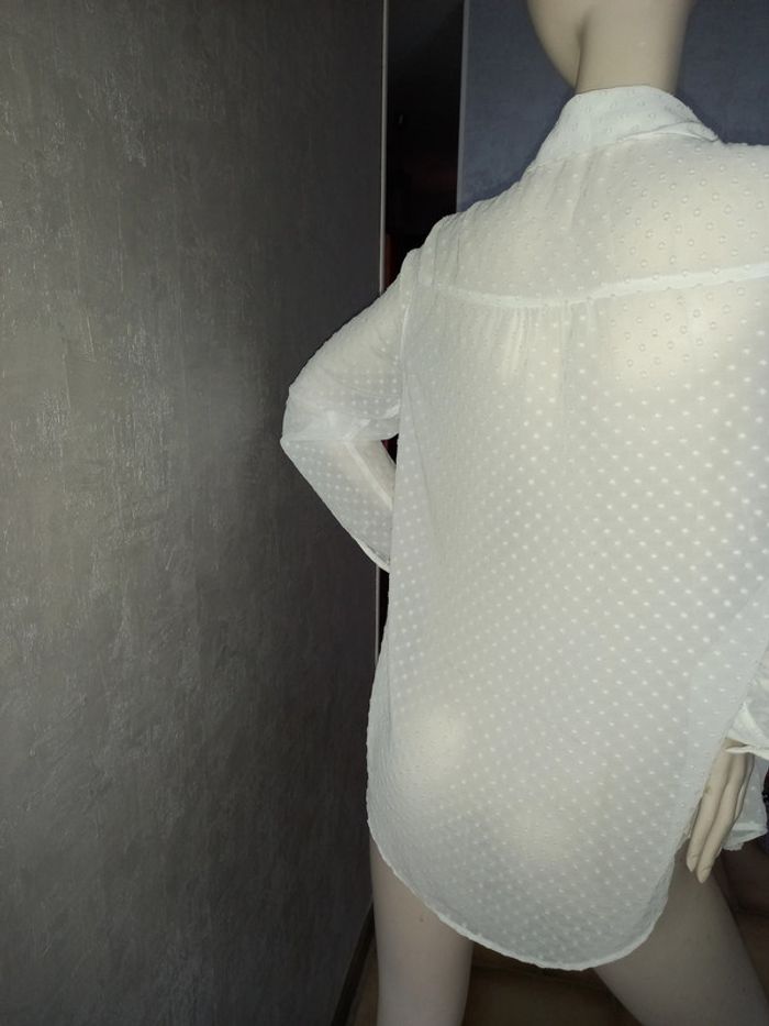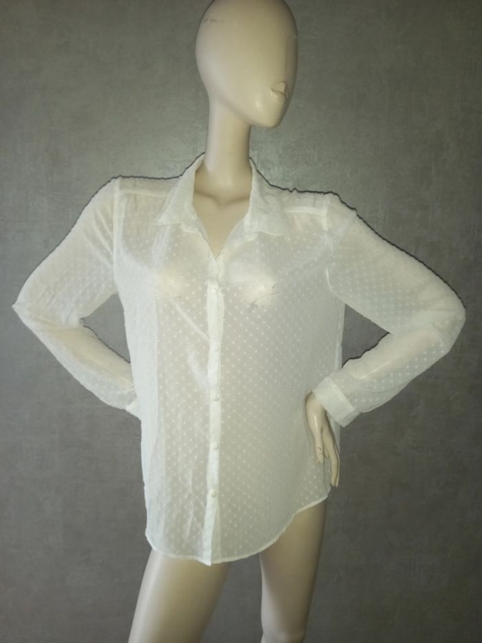 chemise blanche transparente taille 42, étiquette matière coupée, largeur aisselle à aisselle 53 cm, longueur du dessous de bras à en bas 40 cm #42petitefee3