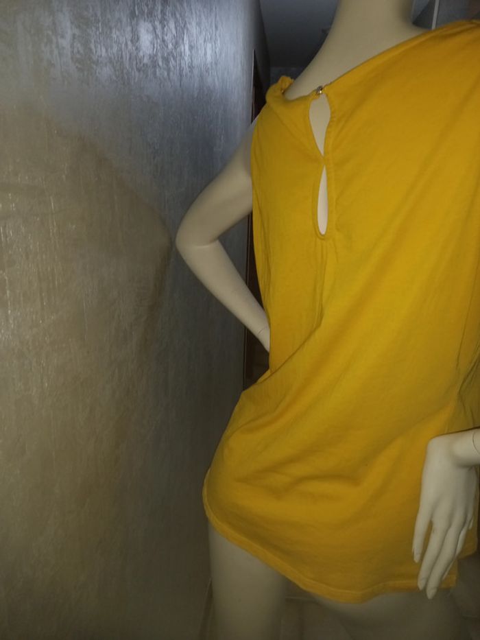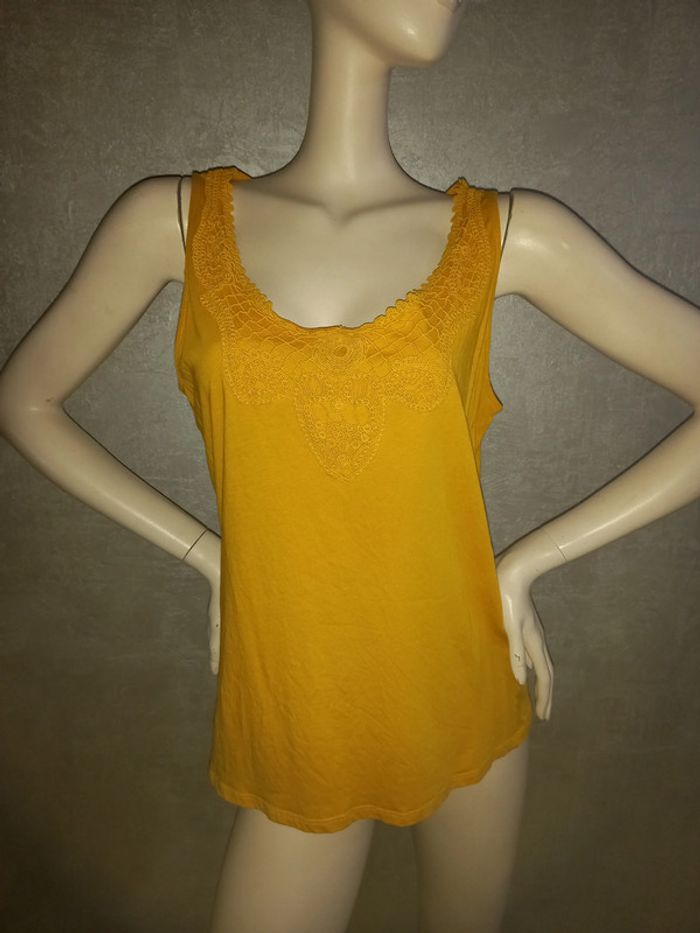 débardeur avec broderie autour du col, couleur moutarde, naf naf taille 42 ( taille XL), largeur aisselle à aisselle 49 cm, matière 100 % coton #42petitefee3