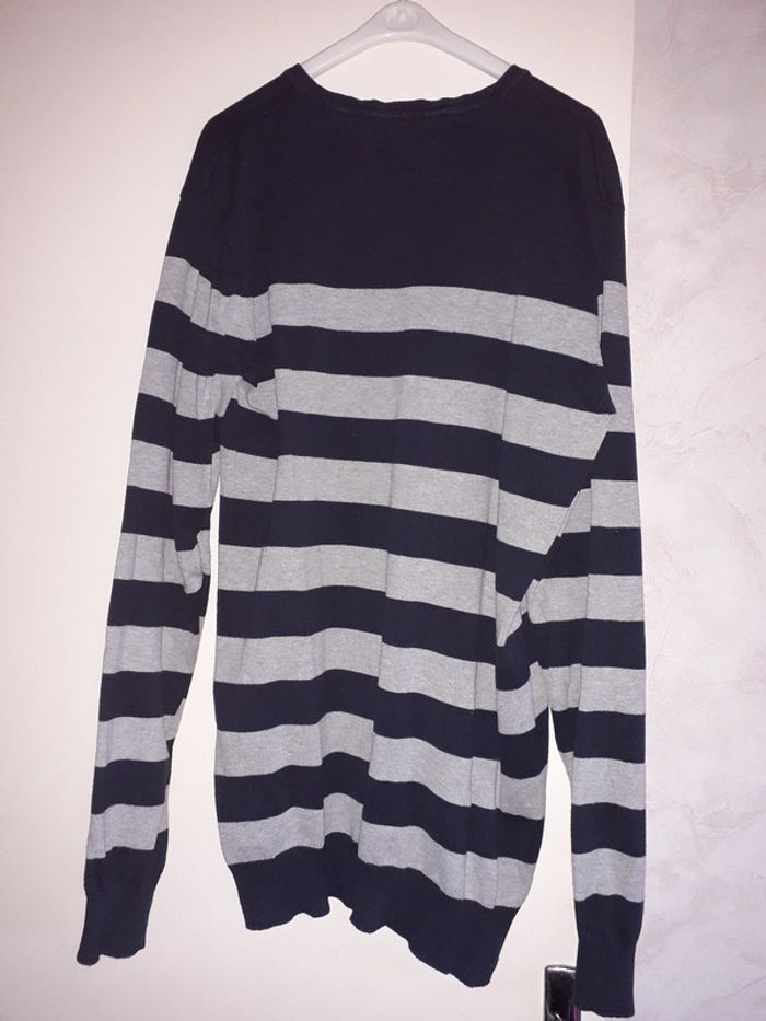 pull col V rayé bleu marineet gris OWK taille L - photo numéro 2