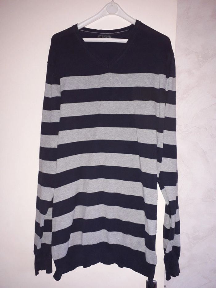 pull col V rayé bleu marineet gris OWK taille L #hommepetitefee3