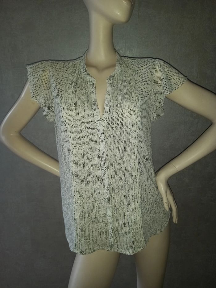 chemise manche courte H&M taille 42, étiquette composition coupée, matière non élasthane, largeur aisselle à aisselle 50 cm, longueur du dessous de bras à en bas 40 cm #42petitefee3