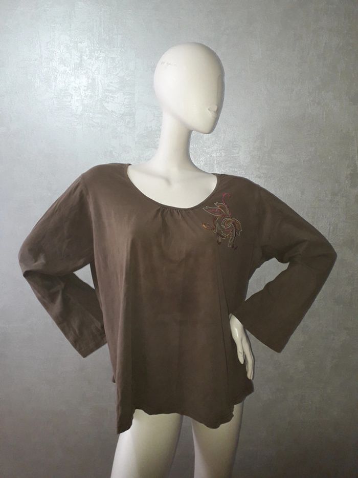 tee shirt marron avec broderie et séquins M&S mode taille 50 - photo numéro 1