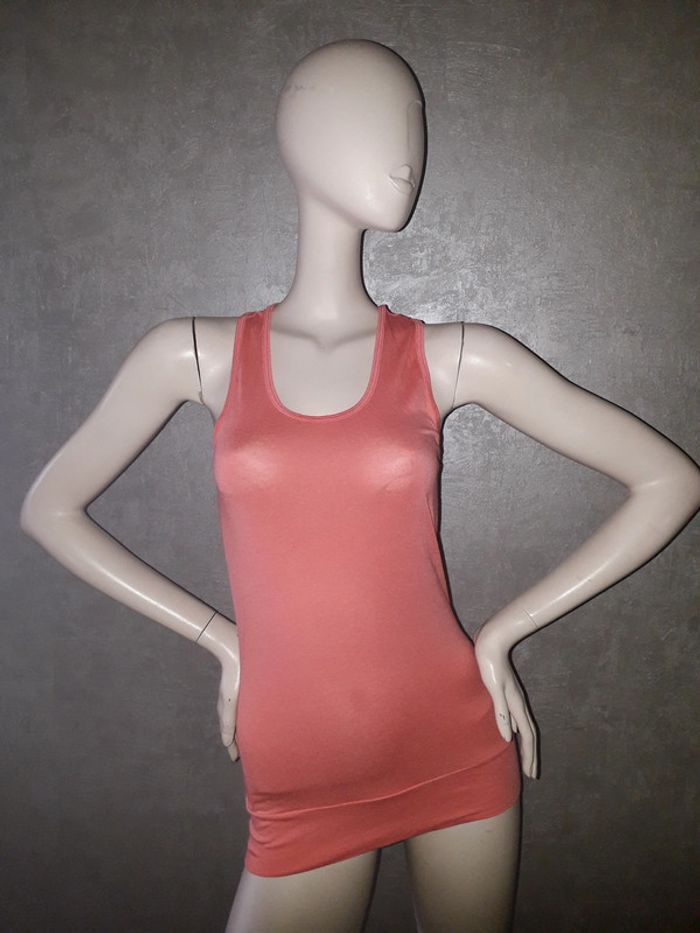 débardeur long rose orangé taille 36/38, matière élasthane #36petitefee3
