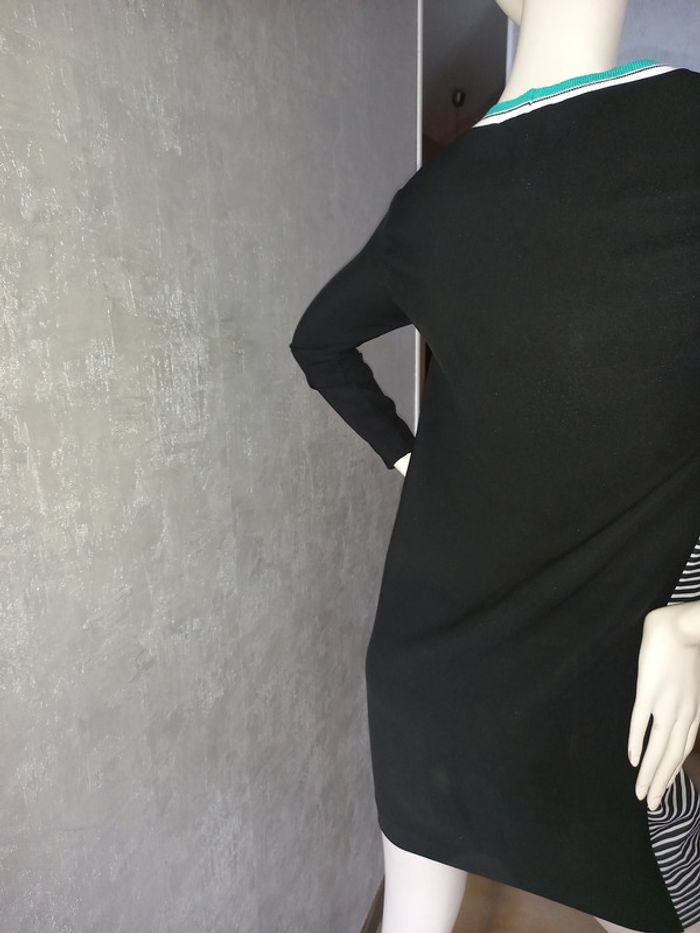 robe noire et rayures cop copine taille 36, matière 95 % polyester et 5 % élasthane, largeur aisselle à aisselle 43 cm, longueur du dessous le bras à en bas 62 cm #36petitefee3