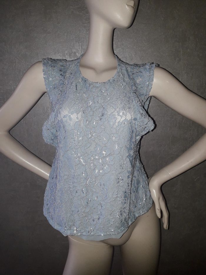 débardeur bleu clair dentelle vera & lucy, marqué taille M et taille 38/40 #38petitefee3