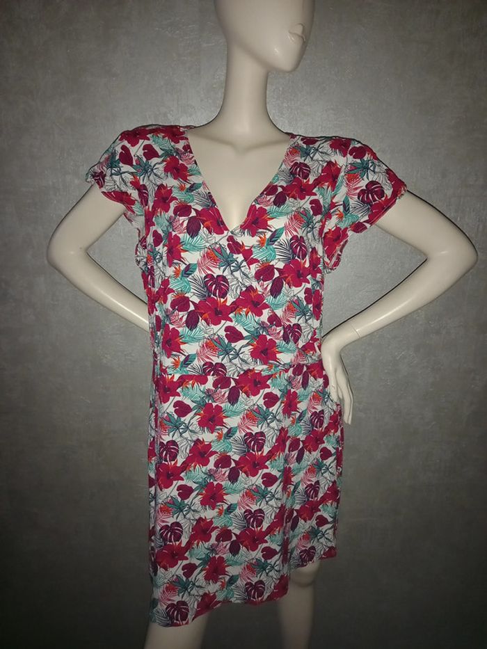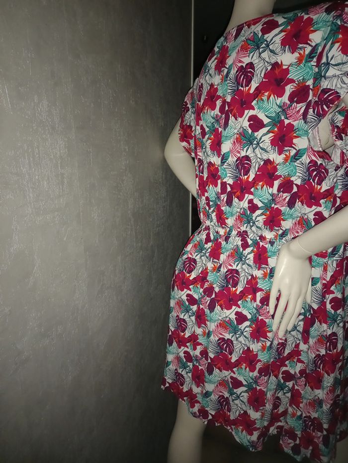 robe fleurie in extenso, marqué taille 46 mais taille 44, largeur aisselle à aisselle 52 cm, longueur du dessous de bras à en bas 64 cm, élastique à la taille, étiquette de composition coupée mais matière fluide et élasthane #44petitefee3