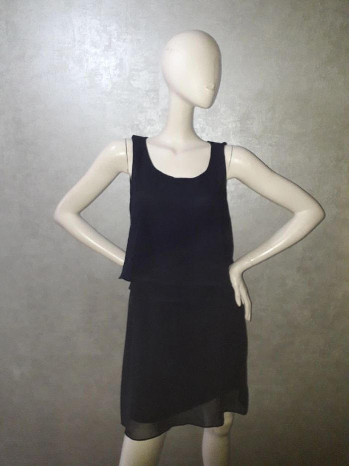robe bleu marine effet 2 pièces Naf Naf, marqué taille L et taille 40/42, matière 68 % polyester, 24 % viscose et 8 % élasthane #40petitefee3
