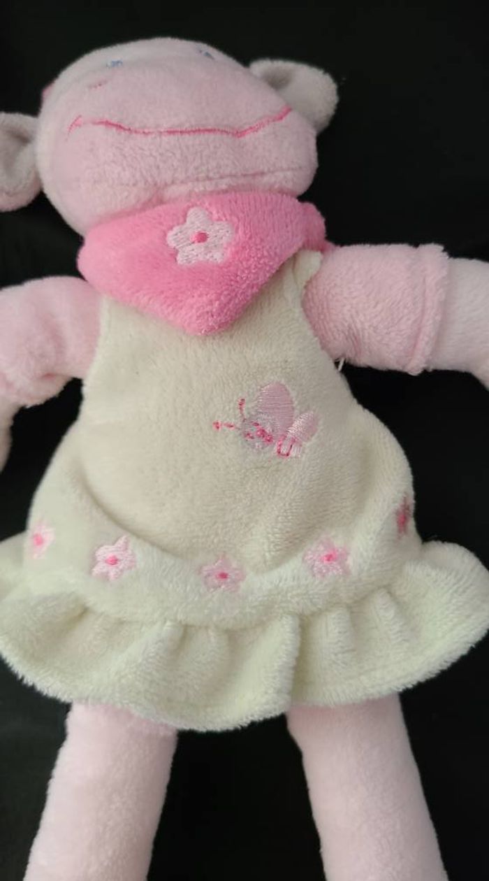 Nicotoy doudou vache rose vert gris robe bandana fleur papillon - photo numéro 4