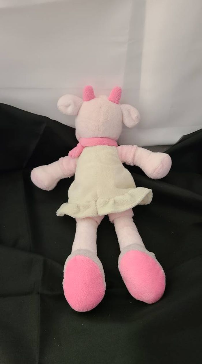 Nicotoy doudou vache rose vert gris robe bandana fleur papillon - photo numéro 1