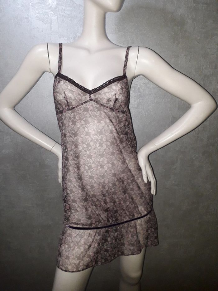 nuisette transparente motifs violet etam, marqué taille 34 mais taille 36, matière élasthane #36petitefee3