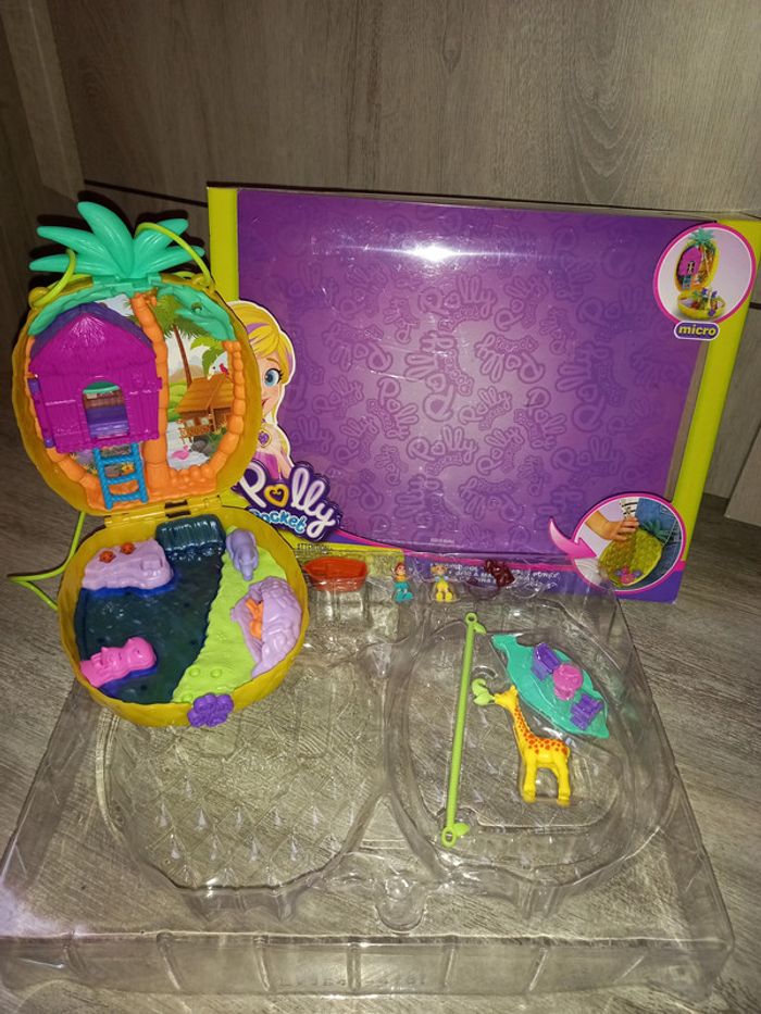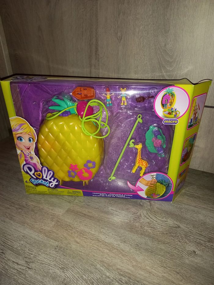 polly pocket coffret sac à main ananas, dans son emballage d'origine, singe perdu mais remplacé par un autre #jouetpetitefee3