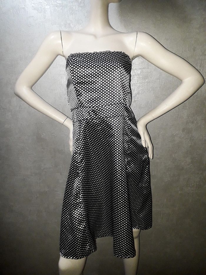 robe bustier satinée noire à pois blanc camaïeu taille 40