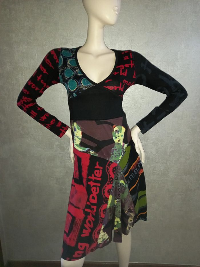 robe noire et coloré manche longue desigual taille 36 - photo numéro 1