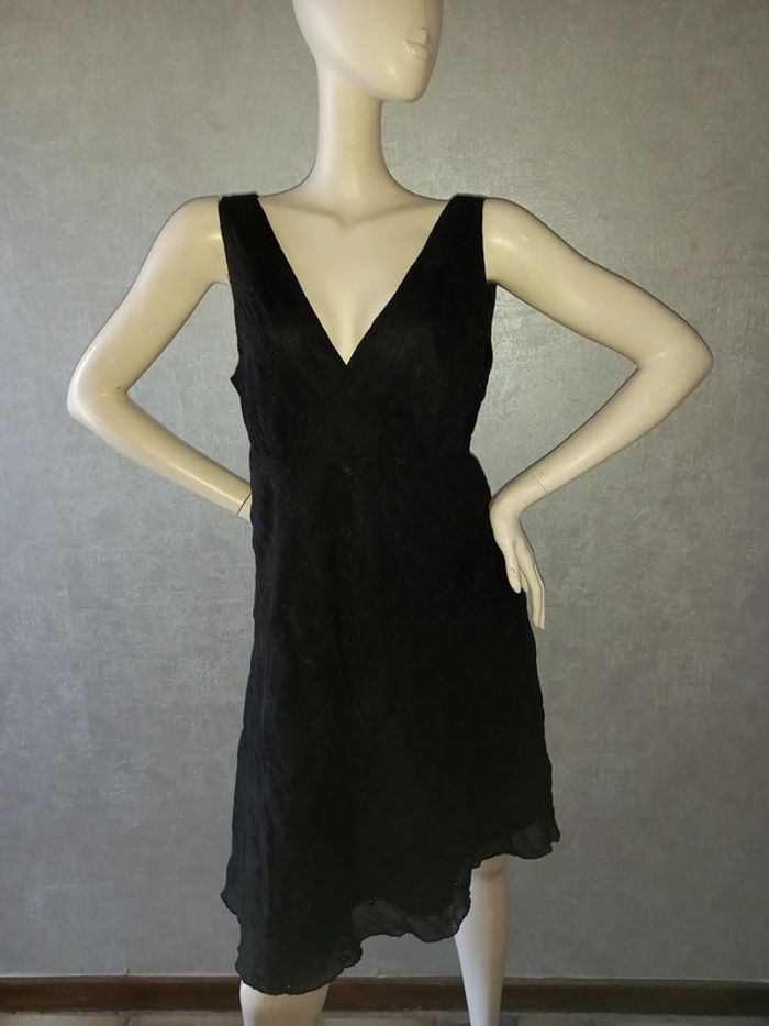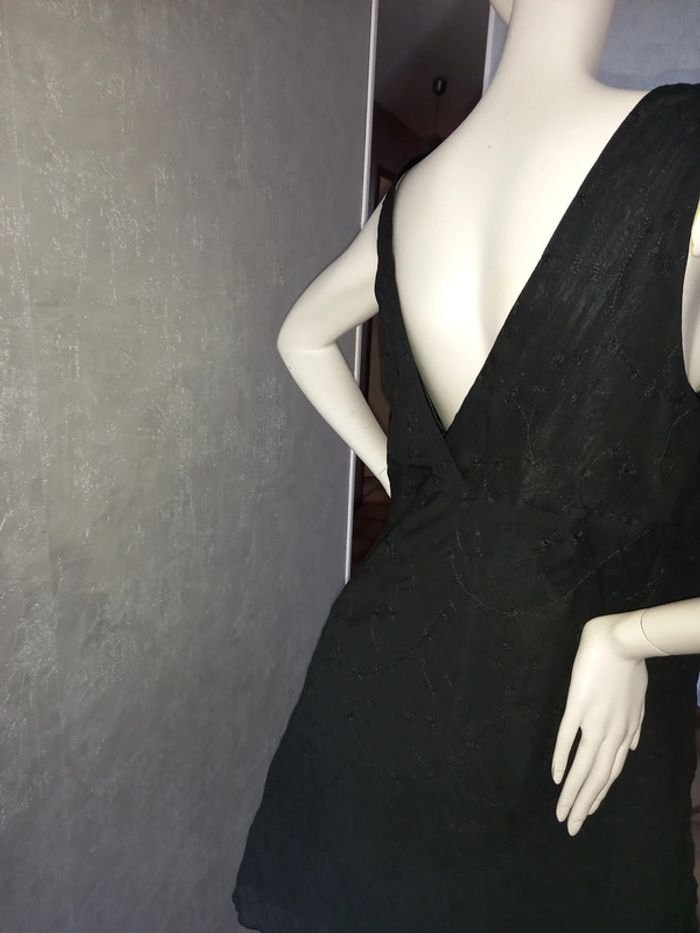 robe noire chic kiabi taille 42, voile sur le dessus et doublure satiné, largeur aisselle à aisselle 48 cm, fermeture éclair sur le coté, longueur du dessous de bras à en bas 72 cm #42petitefee3