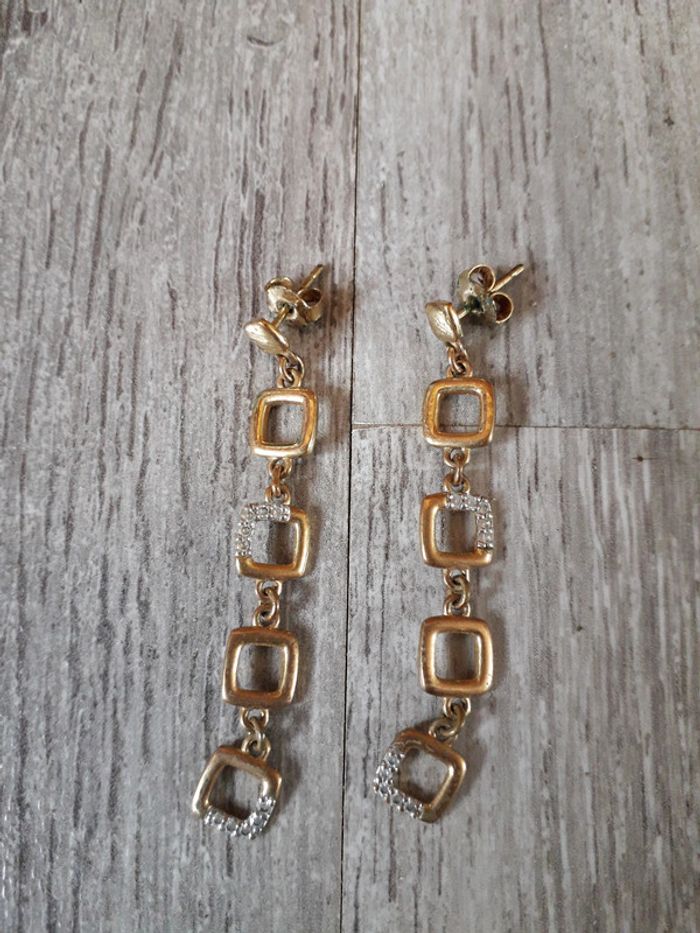 boucle d'oreille plaqué or avec oxyde de zirconium pendante - photo numéro 1