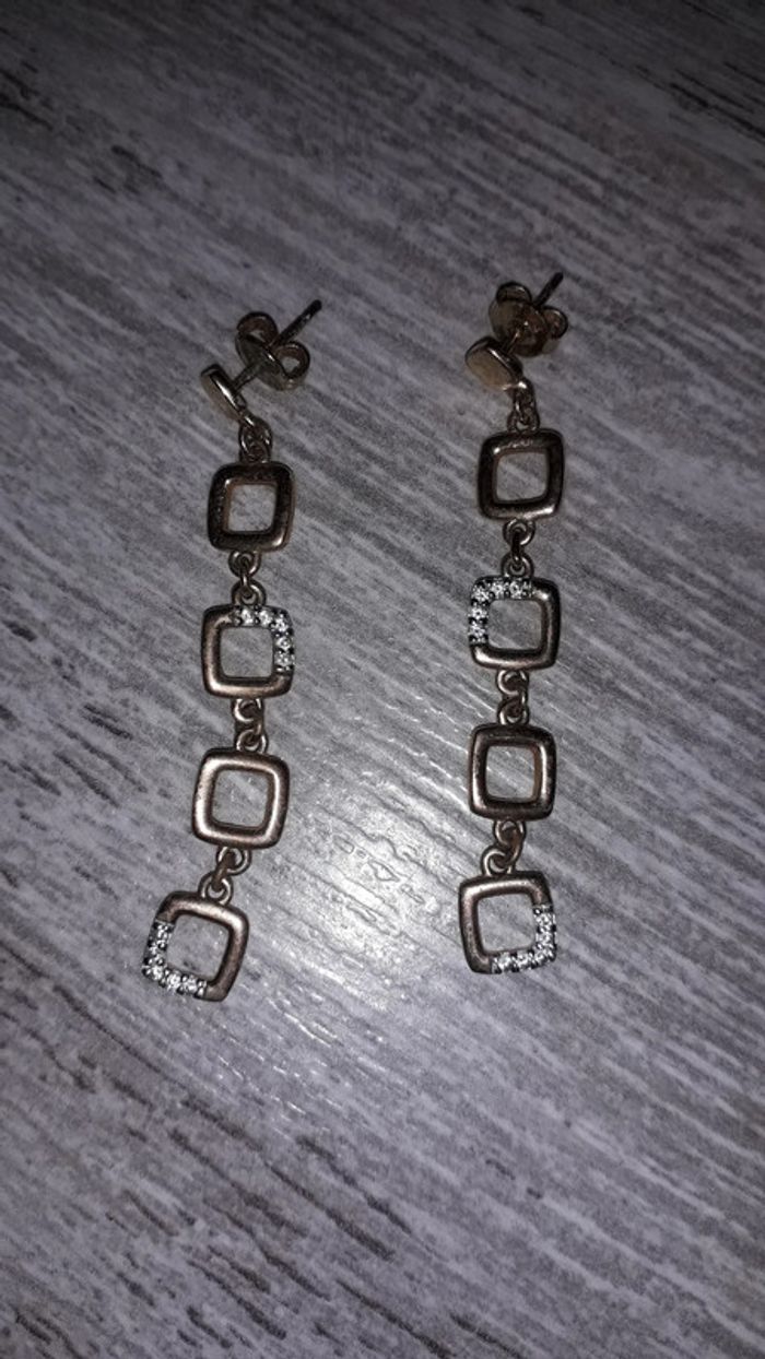boucle d'oreille plaqué or avec oxyde de zirconium pendante - photo numéro 2
