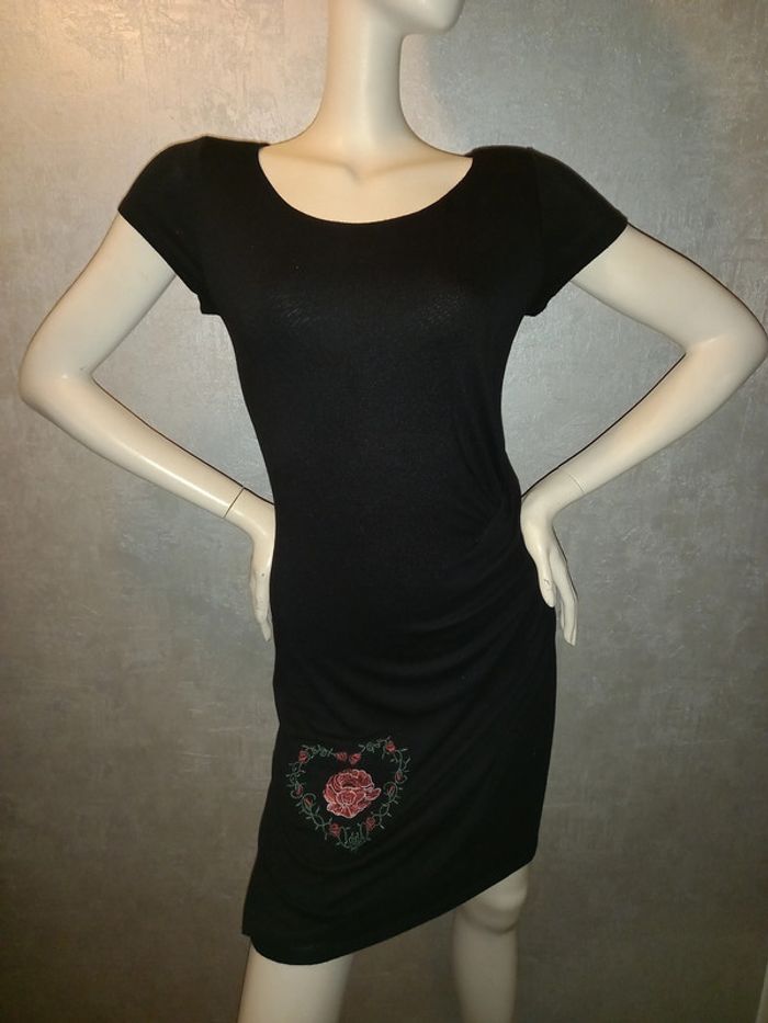 robe pull fine noire avec broderie desigual taille 38/40 - photo numéro 1