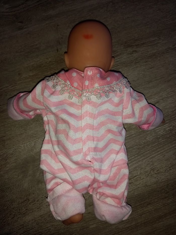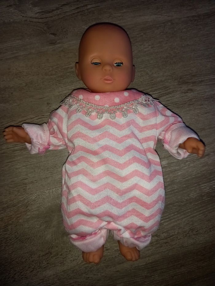 bébé poupon corps en tissu simba, ses yeux se ferment lorsqu'il est allongé, avec pyjama, petite tache derrière la tete, hauteur 29 cm #jouetpetitefee3