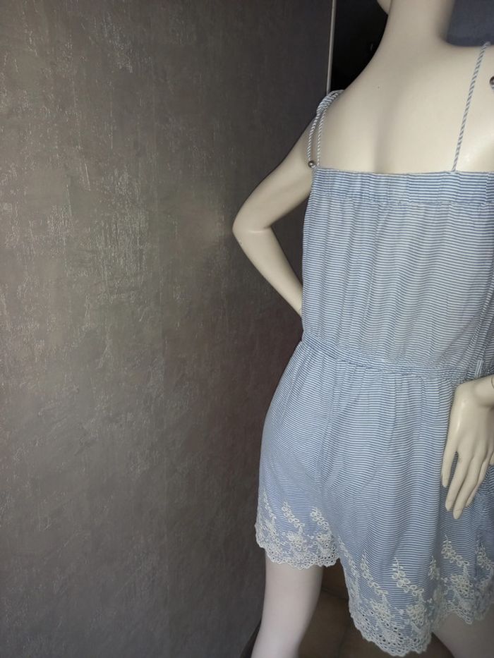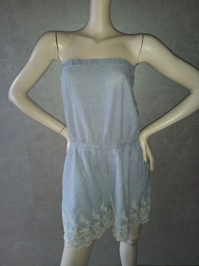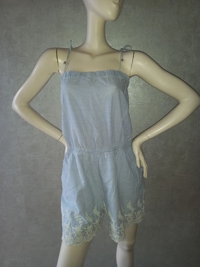 combishort rayé avec dentelle etam, marqué taille 44 mais taille 42, élastique à la taille et élastique au bustier, bretelle réglable en longueur avec le noeud, matière non élasthane, largeur aisselle à aisselle 47 cm #42petitefee3
