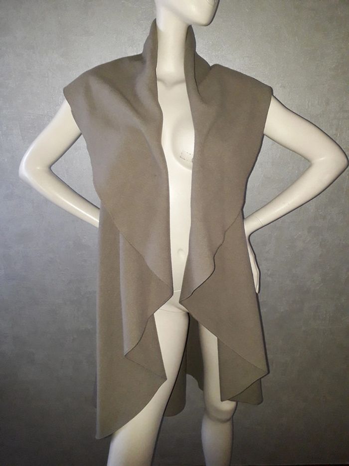 manteau marron sans manche taille unique : du 36 au 46, matière 65 % laine, 30 % polyester et 5 % élasthane, matière douce comme du polaire, made in france #36petitefee3 #38petitefee3 #40petitefee3 #42petitefee3 #44petitefee3 #46petitefee3