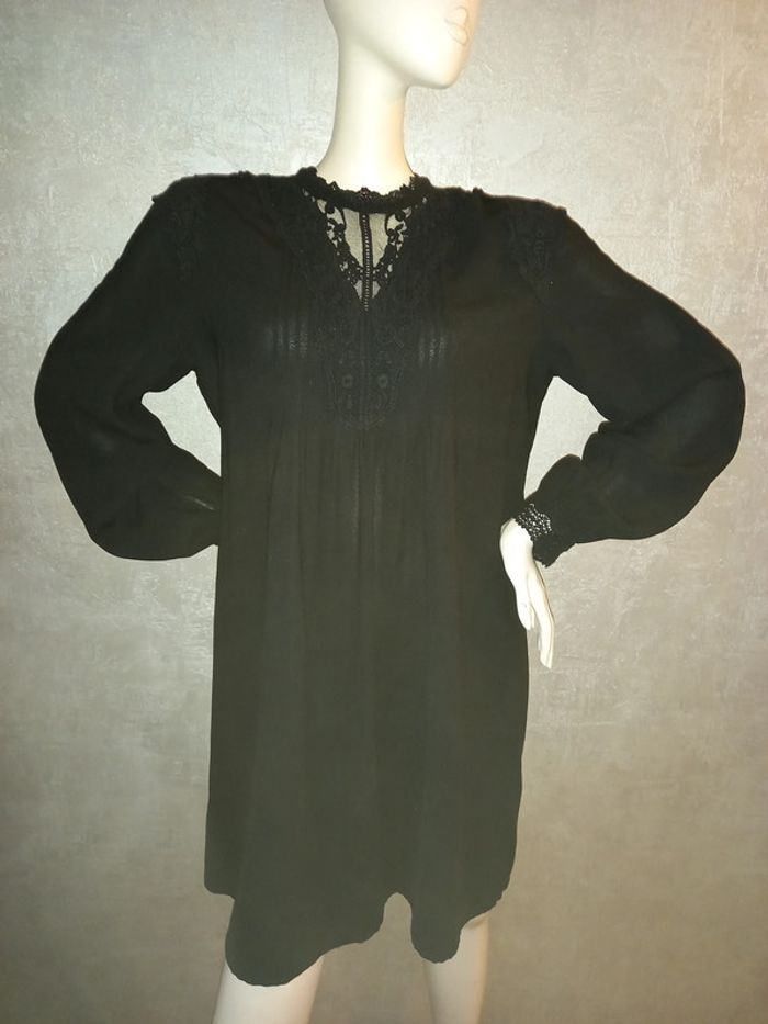 robe noire avec dentelle pimkie, marqué taille L et taille 40/42, matière robe 100 % polyester et dentelle matière 100 % coton, largeur aisselle à aisselle 53 cm, longueur du dessous de bras à en bas 68 cm #40petitefee3