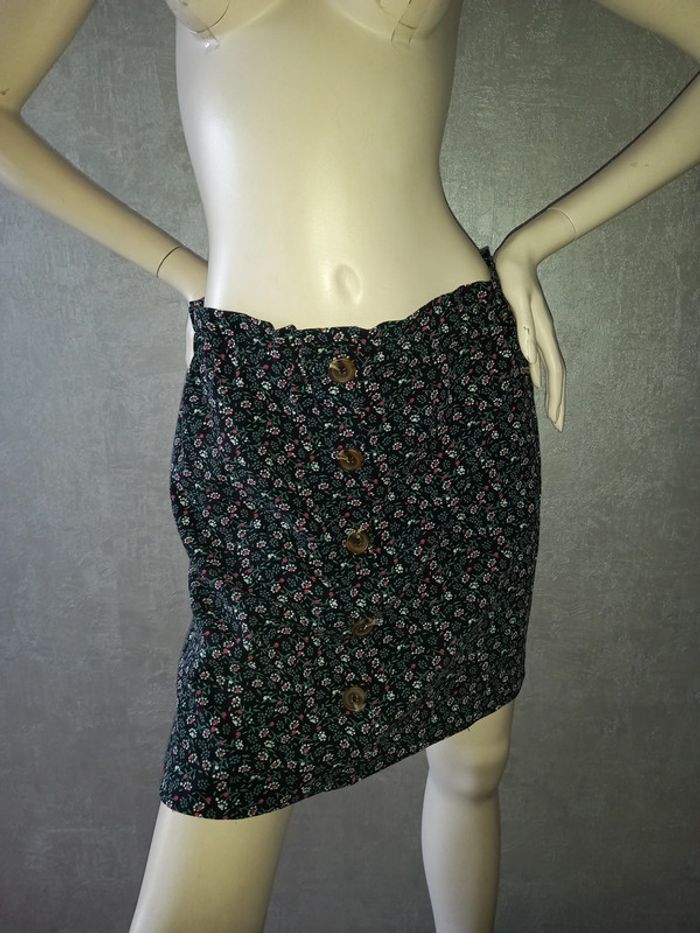jupe noire et fleurie la halle taille 36/38, taille élastique, longueur 47 cm #36petitefee3