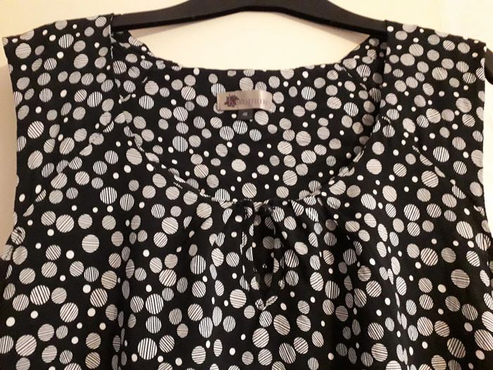 robe noire à pois kiabi woman taille 46, largeur aisselle à aisselle 56 cm, longueur du dessous de bras à en bas 75 cm, matière 100 % viscose #46petitefee3