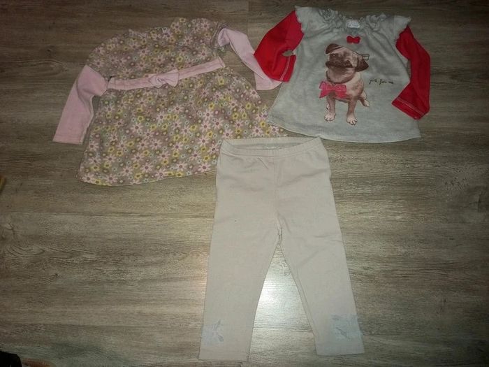 legging gris froufrou en bas et 2 tee shirt taille 18 mois,le logo du chien est un peu craquelé #18moispetitefee3