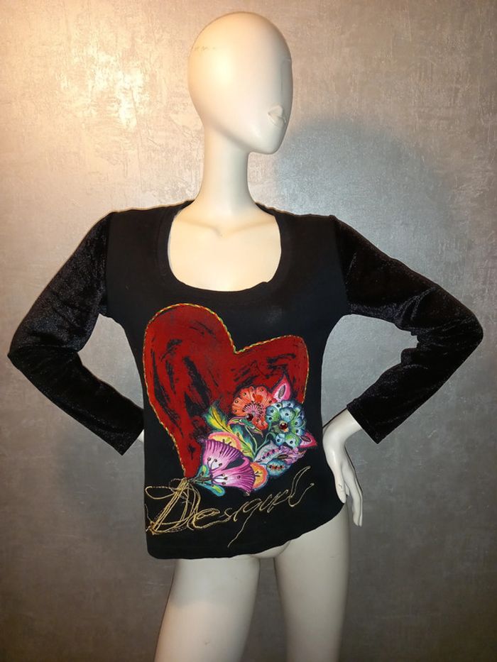 tee shirt manche velours desigual taille 40 - photo numéro 1