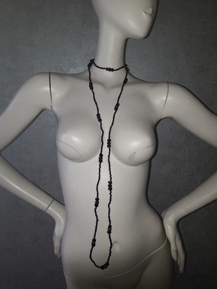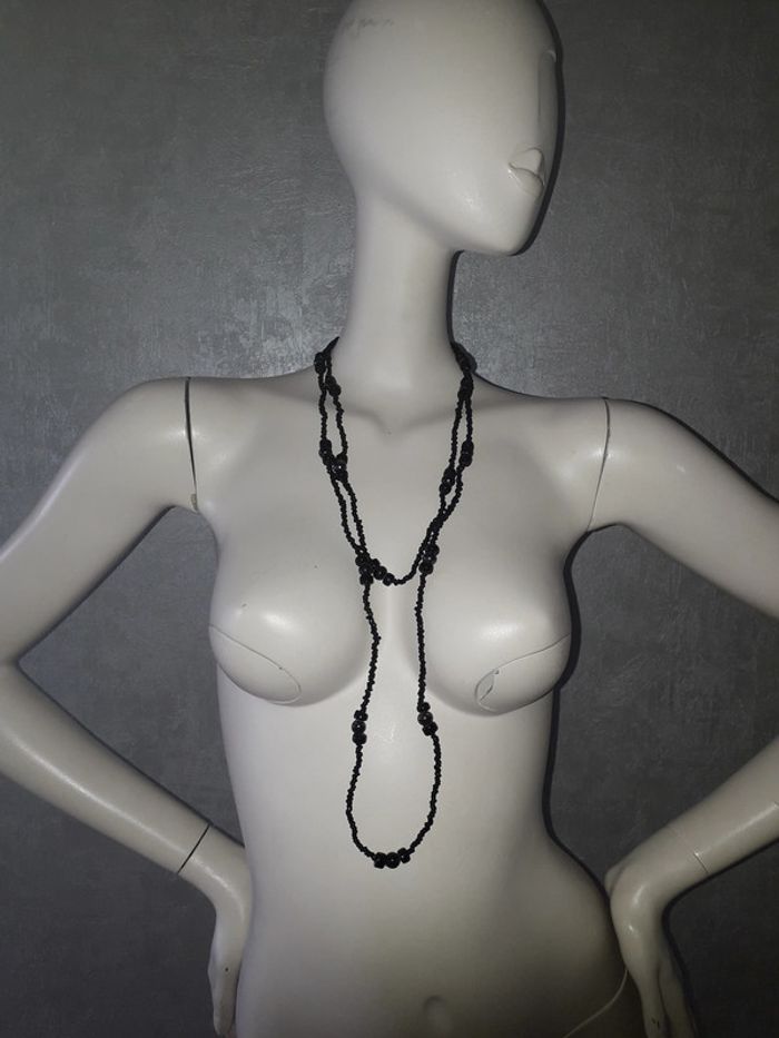 grand collier en perles noires etam neuf - photo numéro 2